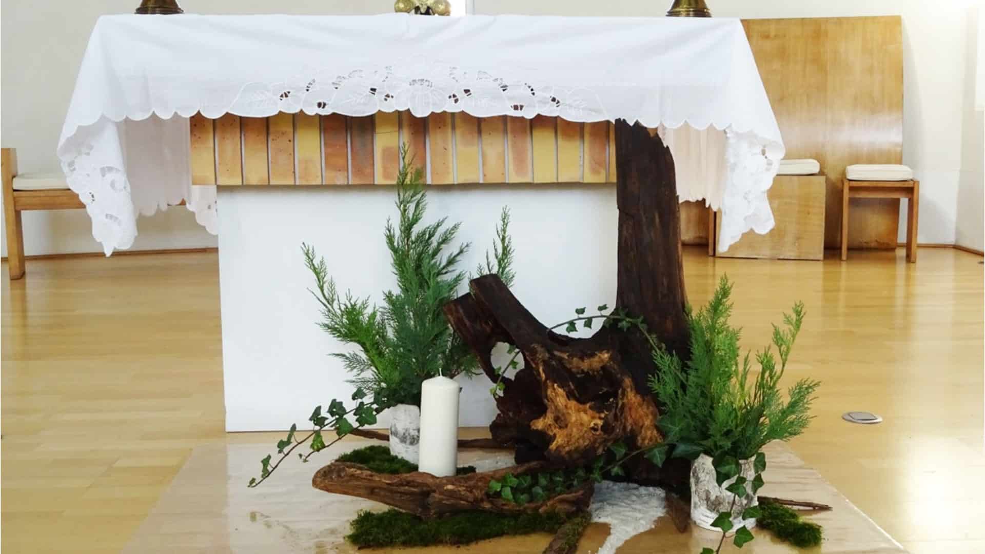 Un vase ou une souche peuvent être le lien entre les quatre dimanches de l’Avent, cette structure de base commune marquera l’unité de ce temps. Il ne s’agit pas d’accumuler au fil des semaines trop d’éléments devant l’autel.