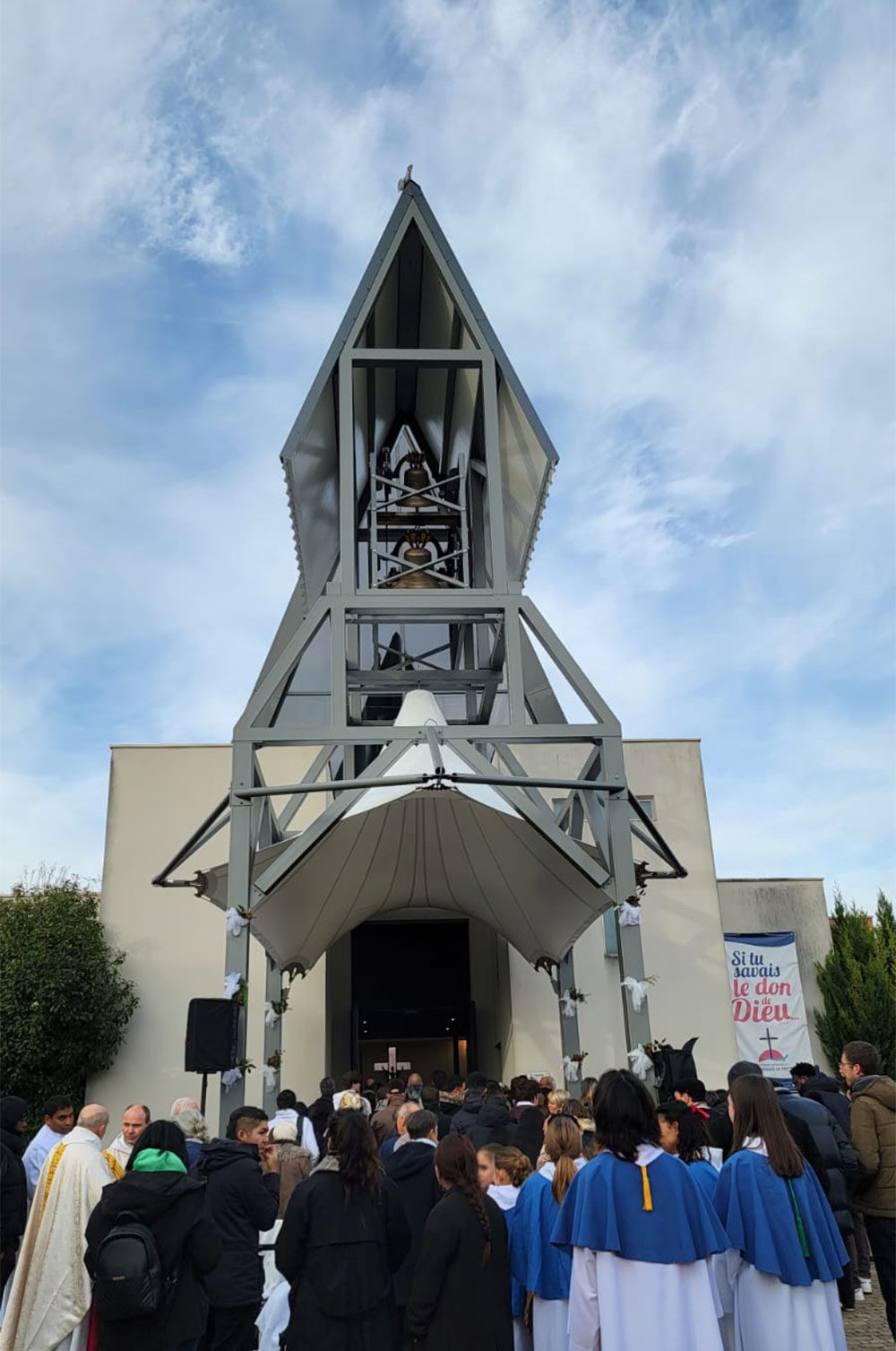 Le clocher de l’église du Christ-Roi de Cormeilles-en-Parisis a été inauguré le dimanche 26 novembre 2023. Ce clocher est le symbole de la communauté paroissiale, engagée à devenir toujours davantage missionnaire.