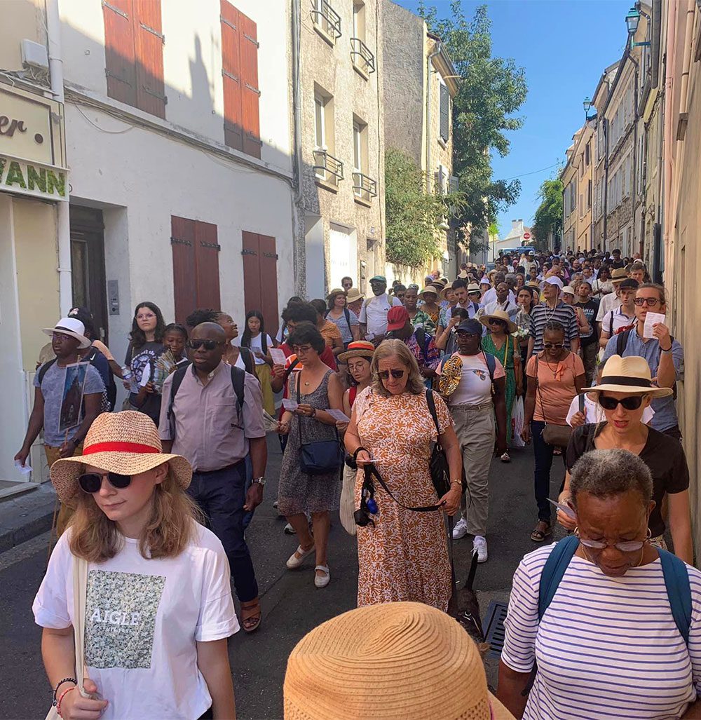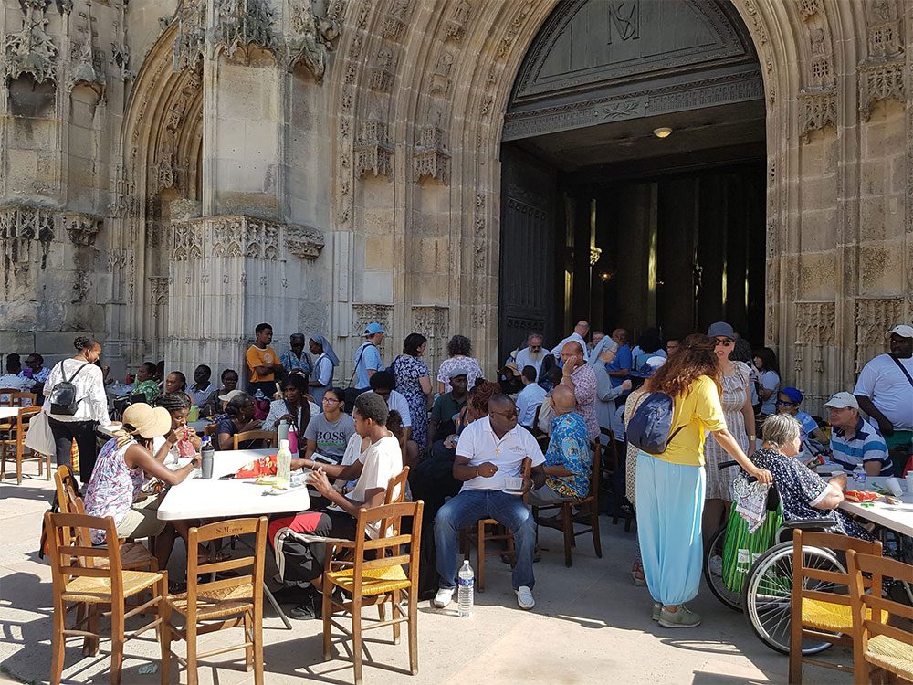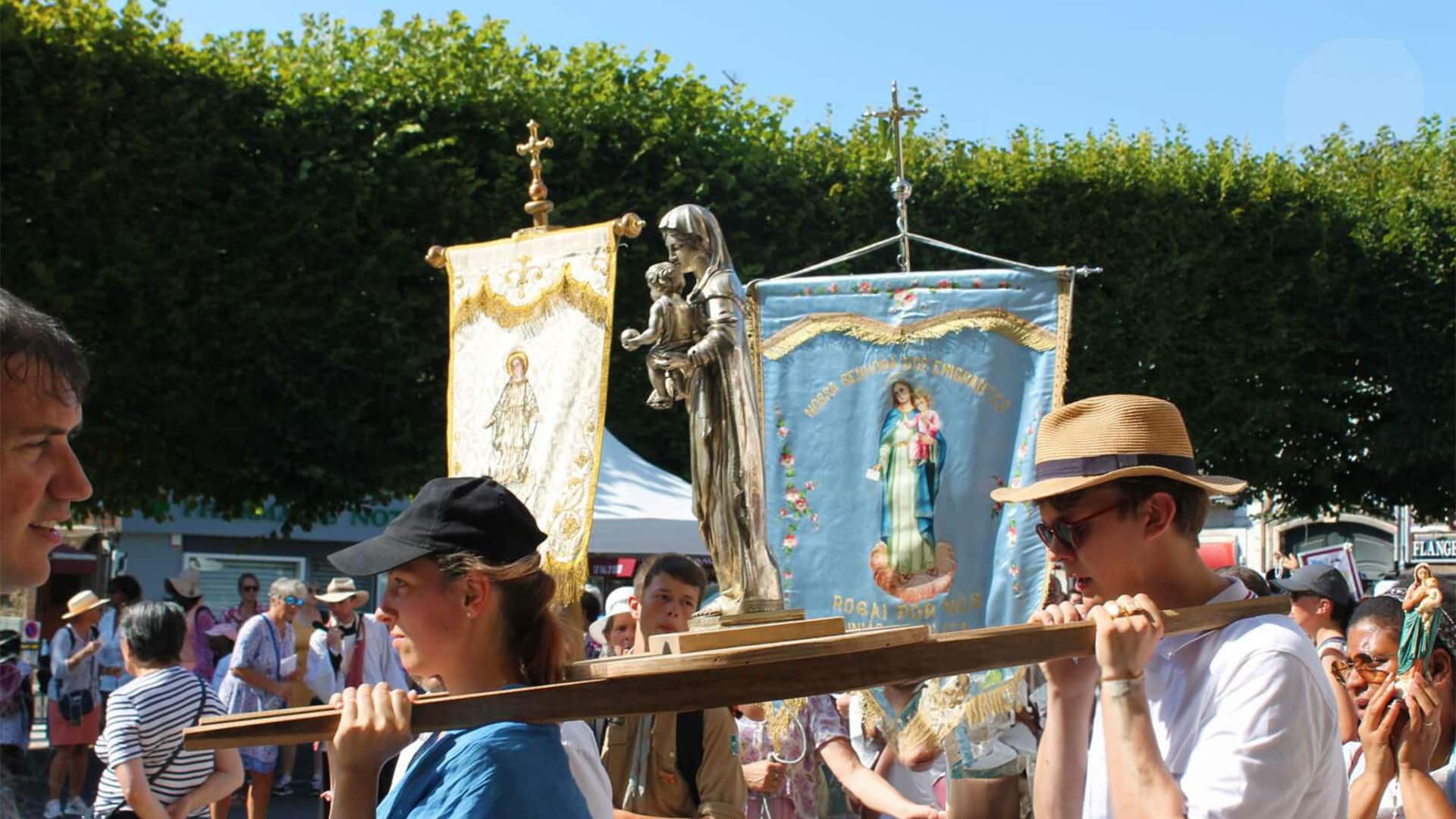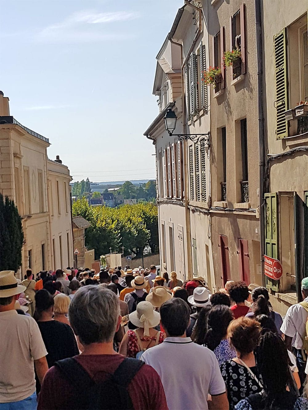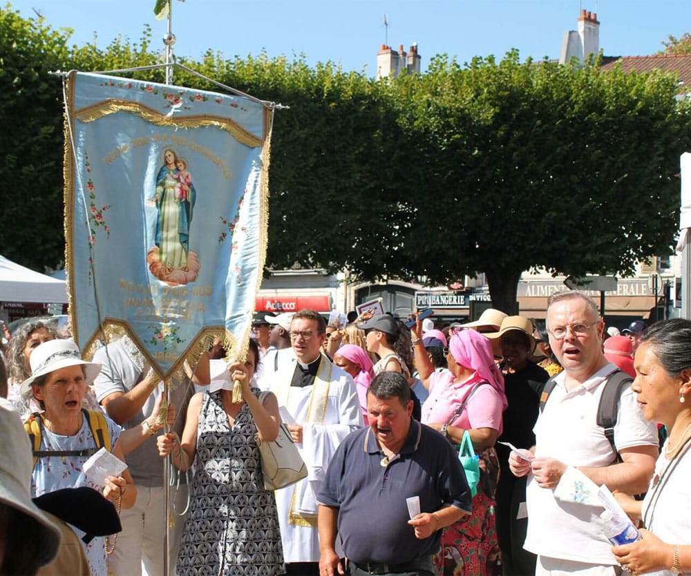 Nombreux étaient les pèlerins de différents pays et cultures qui sont descendus de la cathédrale Saint-Maclou vers l’église de Notre-Dame de Pontoise en procession, en portant les statues de Notre Dame et en priant.