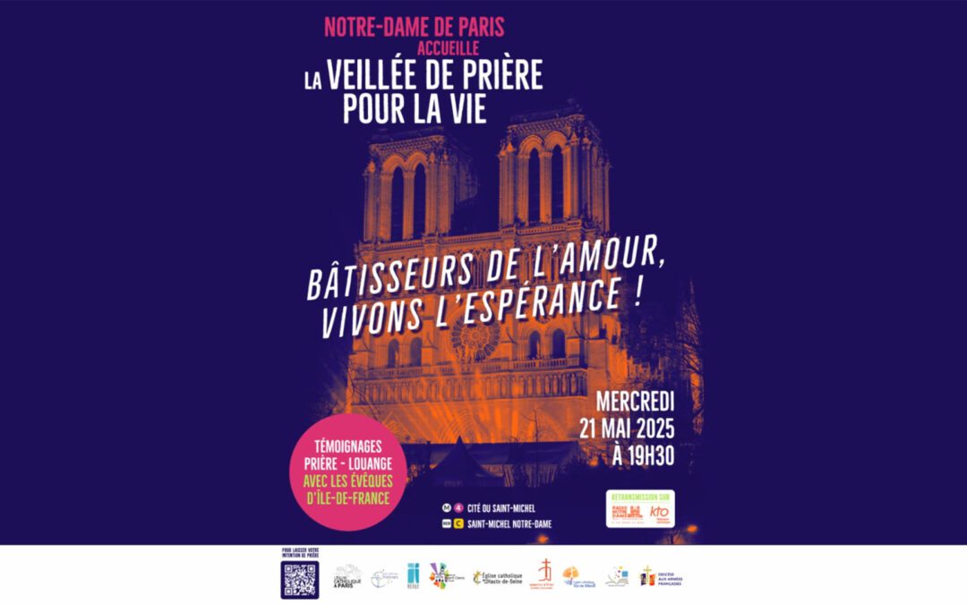 A l’invitation des évêques d’Ile-de-France, la Veillée de prière pour la vie 2025 aura lieu le mercredi 21 mai 2025 à 19h30 à la cathédrale Notre-Dame de Paris, sur le thème « Bâtisseurs de l’amour, vivons l’espérance ! »