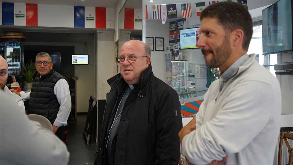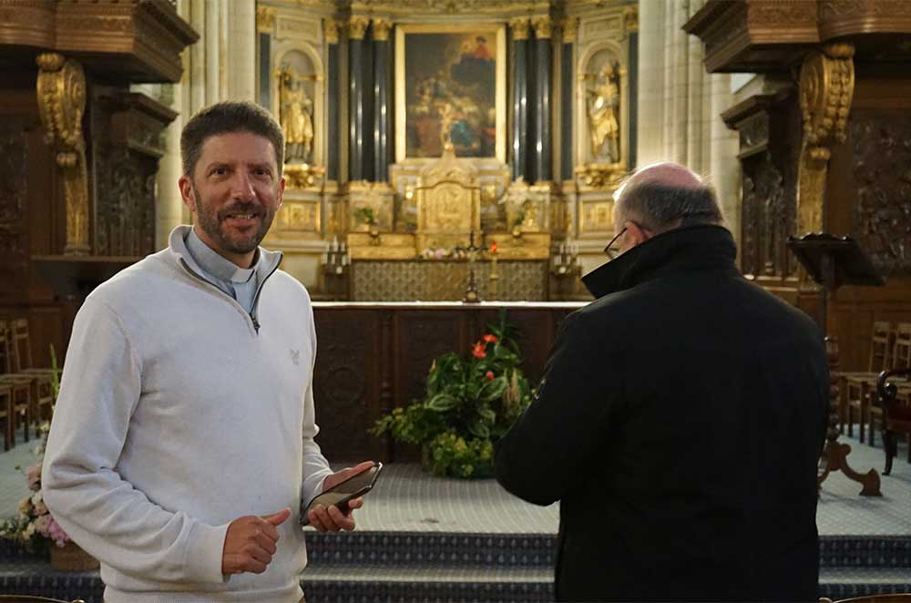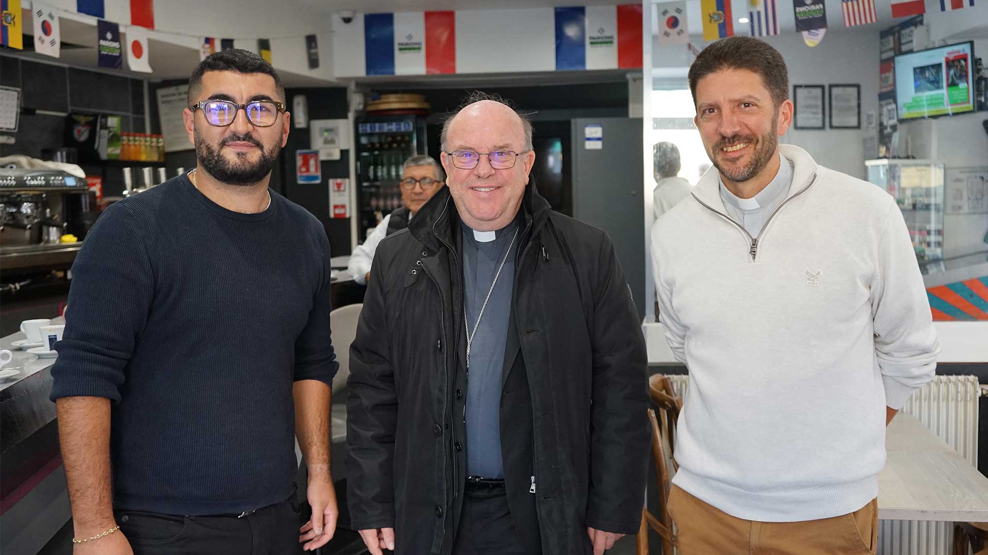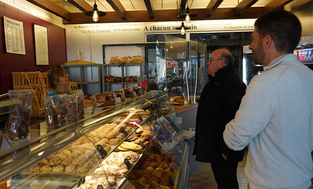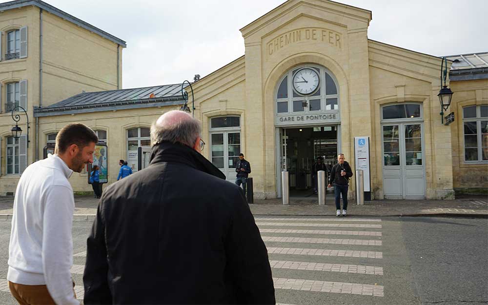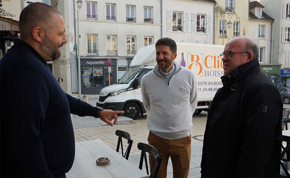 Accompagné par le P. Edouard George, nouveau curé de Pontoise, ils sont allés au café, à la boulangerie, à la pharmacie, chez un fleuriste, un libraire, sans oublier les chocolatiers… Ils ont terminé leur visite par la gare de Pontoise où l’évêque a pu s’entretenir avec des agents sur place. Les rencontres étaient simples, joyeuses et chaleureuses…