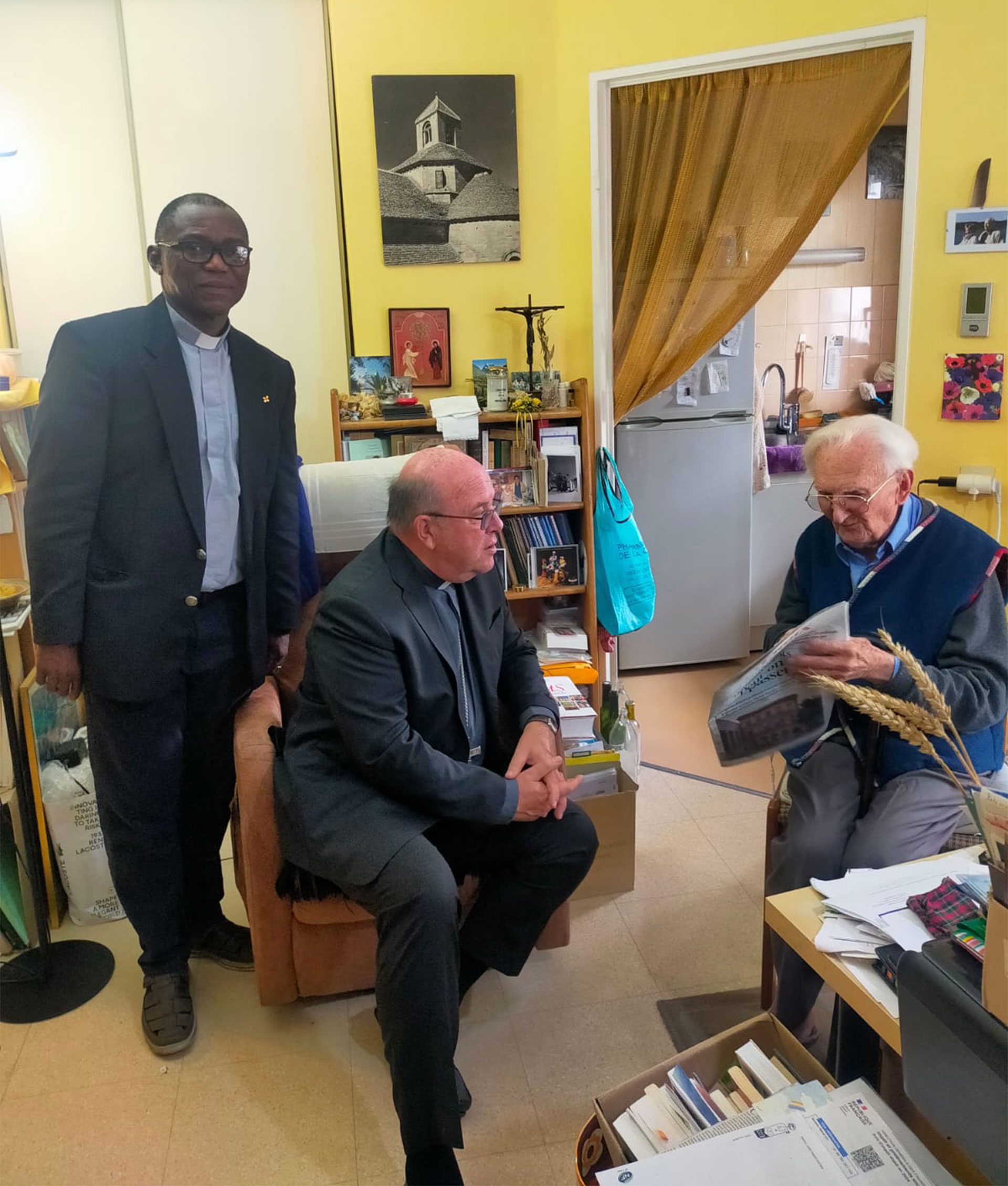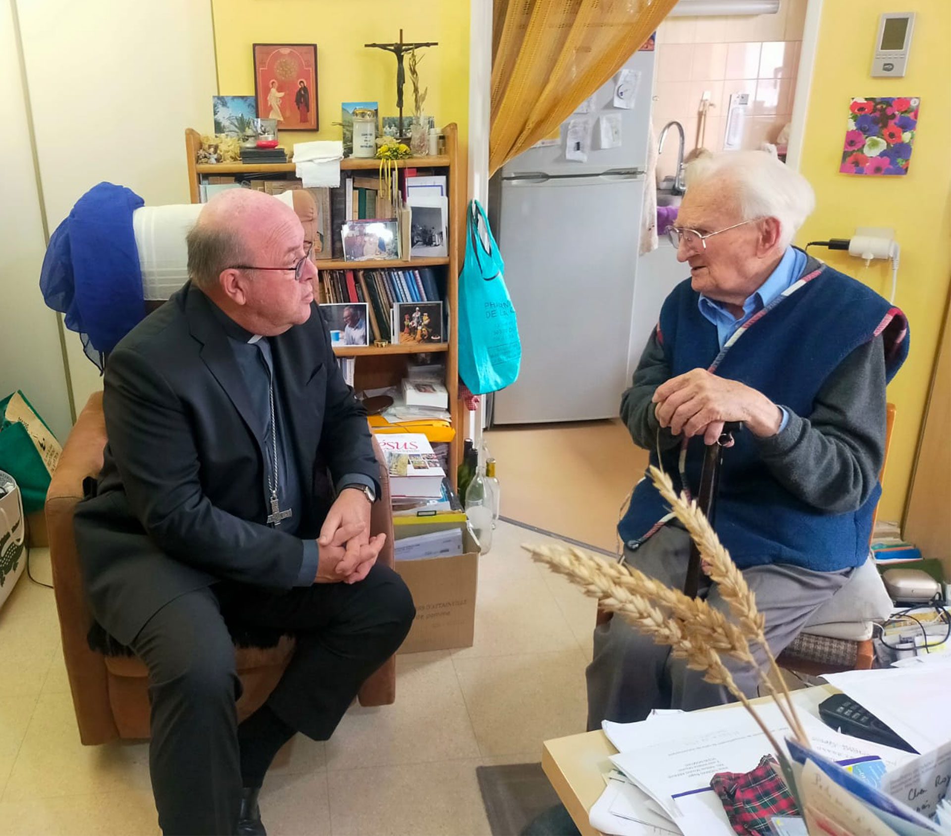 Jour 1. Première journée du nouvel évêque de Pontoise. Un moment avec les pompiers de Goussainville pour les saluer et les remercier de leur intervention lors de l’incendie de l’église de Viarmes. Présentation, échanges autour d’un café ! Merci aux pompiers. Puis rencontre avec le père Roger Thomas, bientôt 102 ans. Action de grâce et témoignage d’une vie donnée !