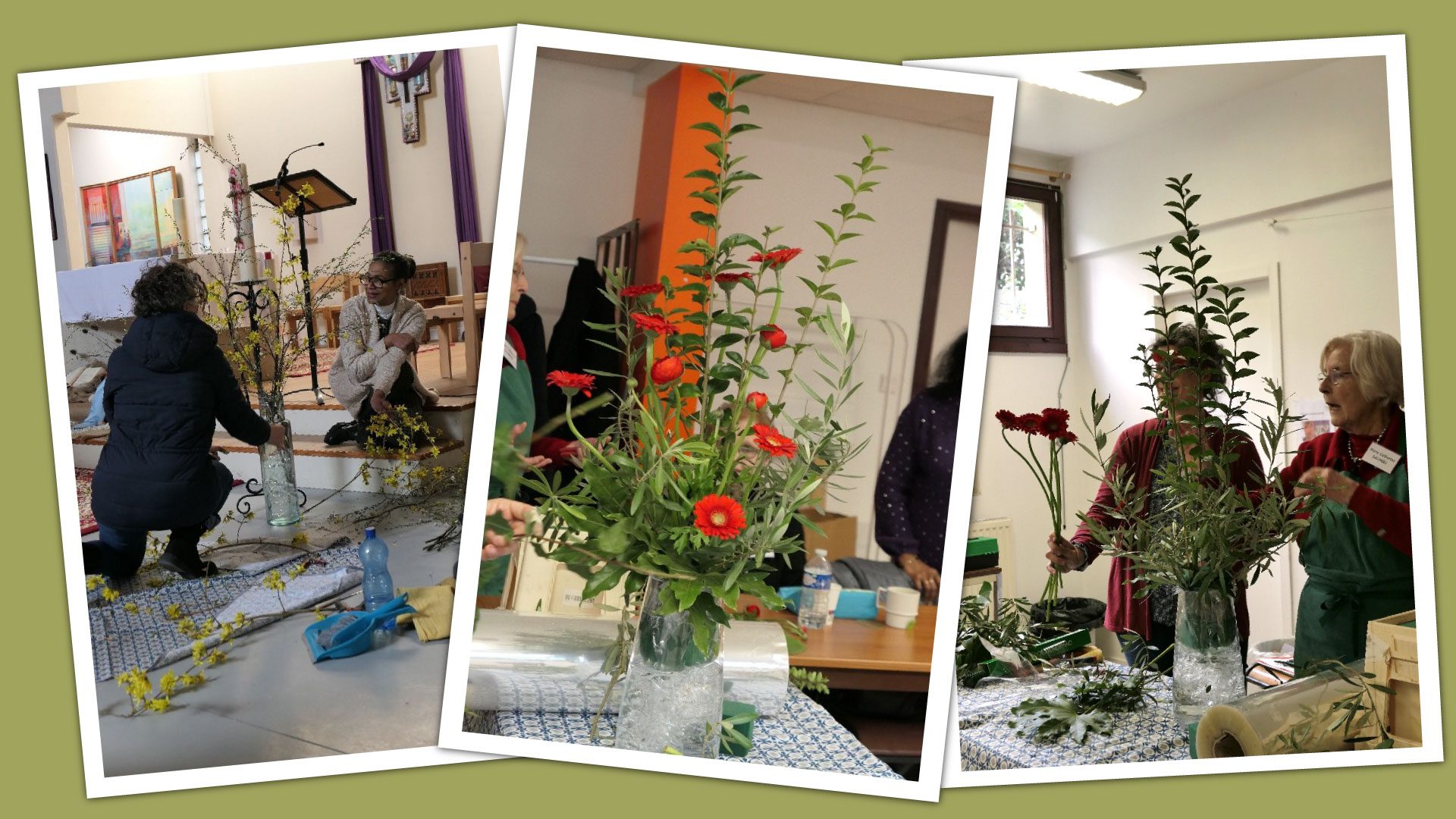 C’est la première fois que la formation diocésaine « Fleurir en liturgie » se tient à la salle paroissiale attenante à l’église Sainte-Claire de Vauréal sur l’invitation du père Étienne et de Lise.