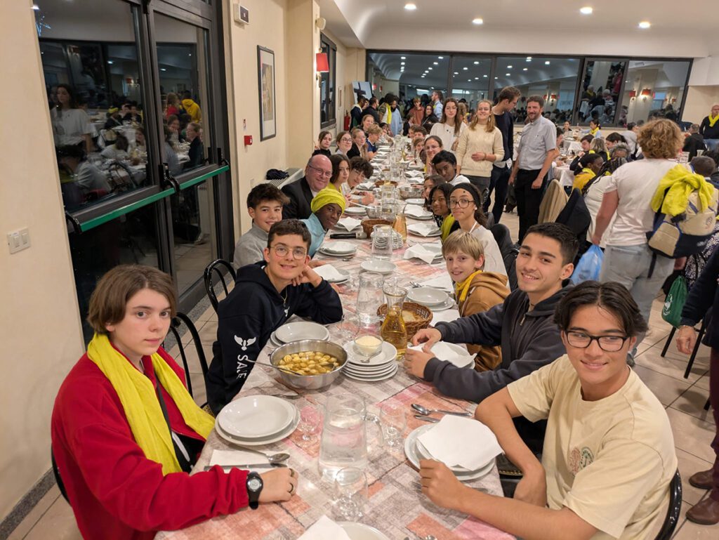 L’après-midi, la pluie s’efface pour laisser place à la lumière. Le groupe part à la découverte du Rome baroque : la Fontaine de Trévi, les églises aux plafonds dorés, les places animées. Entre émerveillement artistique et prière silencieuse, chacun découvre une autre forme de beauté : celle qui élève l’âme.