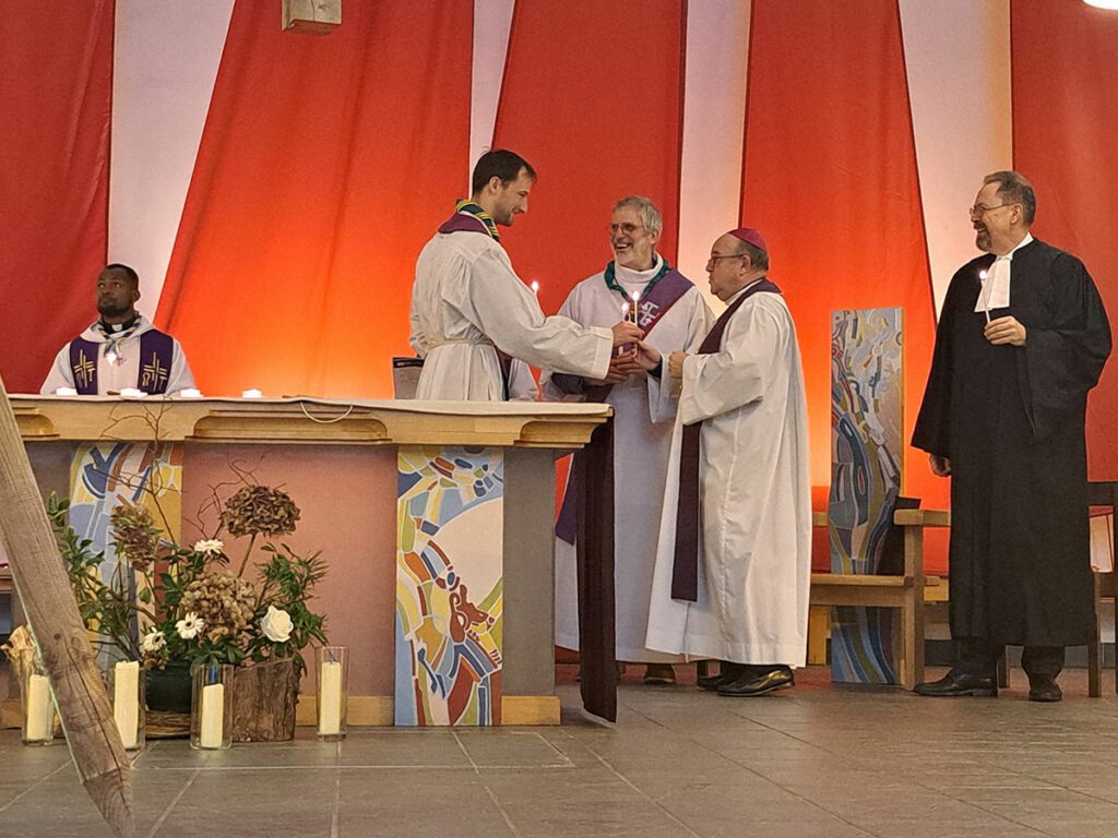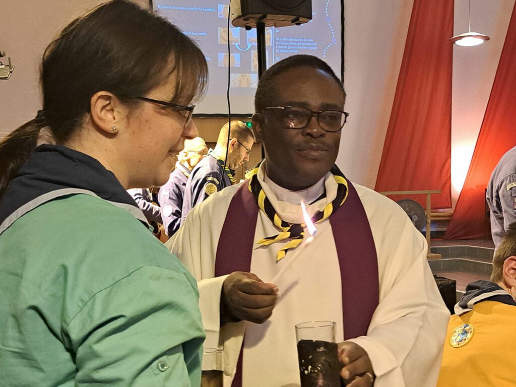 L’après-midi, les Scouts et Guides de France ont convergés vers Cergy à l’église Bienheureux Frédéric Ozanam pour la recevoir puis la diffuser autour d’eux dans leurs divers lieux de vie. Ils se sont rassemblés autour de notre évêque Mgr Benoît Bertrand, accompagné du pasteur Michel Block représentant nos frères scouts protestants, des aumôniers territoriaux pères Baptiste Loevenbruck et Martin de Hédouville, des aumôniers de groupe, pères Fulgence Mehouenou, Antonio Gomes, Savio Morais et de Luc Mion, diacre.