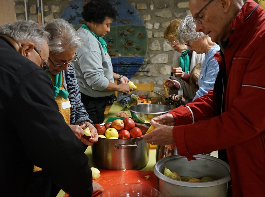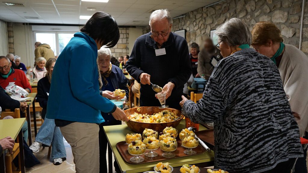 L’engagement généreux et chaleureux des bénévoles, venus de tous âges et de tous horizons – et reconnaissables à leur foulard vert – a été un véritable moteur de cette rencontre. Leur présence attentive, leur sourire, leur disponibilité et leur créativité ont permis à chacun de se sentir accueilli, écouté et accompagné. Qu’ils aient animé un atelier, préparé les lieux, servi le repas ou simplement offert une parole bienveillante, tous ont contribué à faire de ce temps un moment profondément humain et fraternel. Leur service discret mais essentiel a été le reflet vivant de l’Évangile en action.