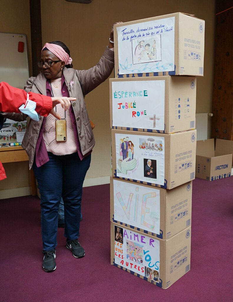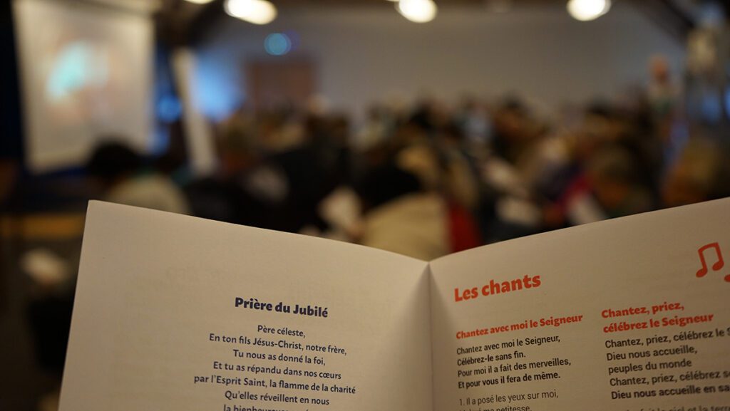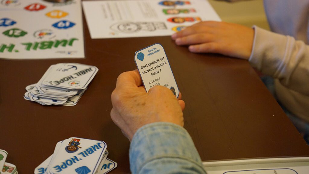 C’est un programme festif et fraternel qui a été proposé aux participants : louange, partage d’évangile et autour du logo du Jubilé, évangile gestué, découverte de Rome à travers une vidéo réalisée pour l’occasion, ateliers jeux et coloriages pour petits et grands, préparation d’une salade de fruits géantes à partir des fruits apportés par chacun et réalisation d’une œuvre collective symbolique : la porte du Jubilé !