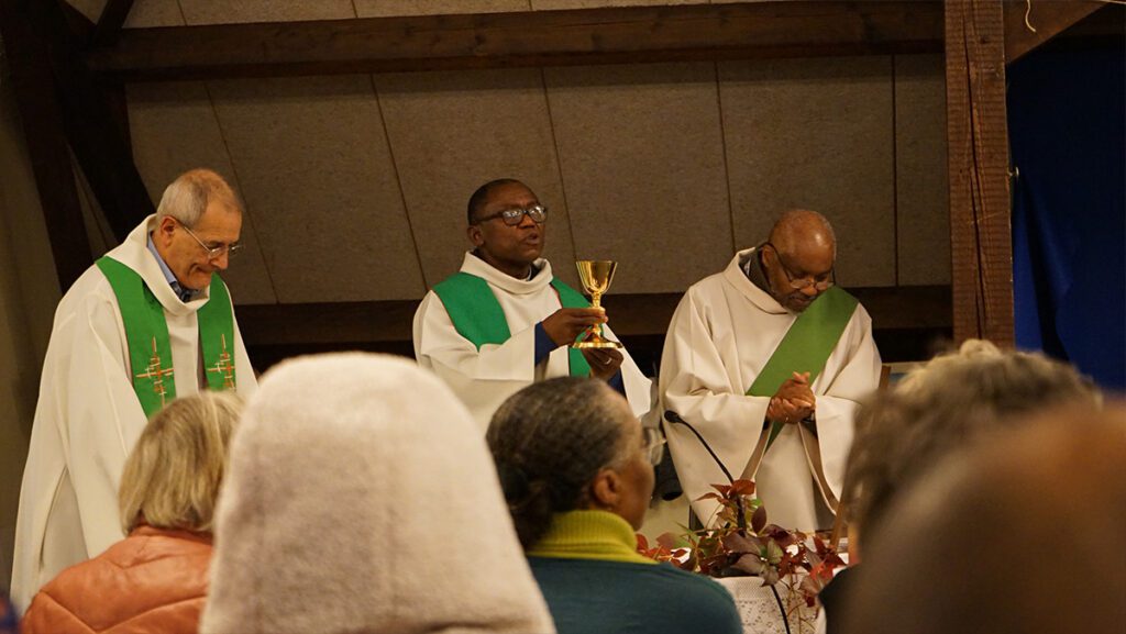 De gauche à droite : Père Henri de la Salle ; Père Monnet Yapo ; Claude Saint-Amour, diacre
