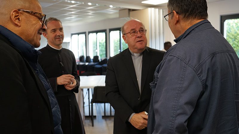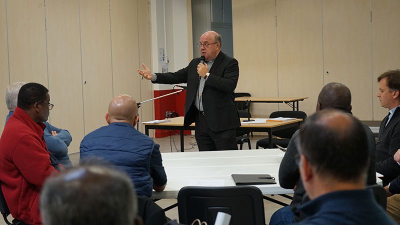 En ouverture de la rencontre avec ses curés, Mgr Benoît BERTRAND a d’emblée précisé qu’il avait tout à apprendre d’eux. « Contrairement à vous, je n’ai jamais été curé. », a-t-il avoué. Mais il leur a livré une anecdote inspirante : alors qu’il était évêque de Mendes, Mgr BERTRAND avait pris le temps d’accompagner un berger de la région avec ses brebis. De cet homme d’expérience, le P. BERTRAND a retenu quelques postures fondamentales du bon berger, du bon pasteur… En particulier, le berger se doit d’être à l’écoute de son troupeau, de prendre soin des plus fragiles.