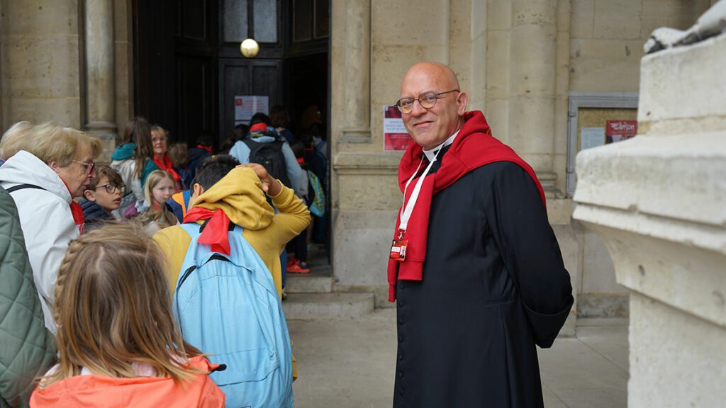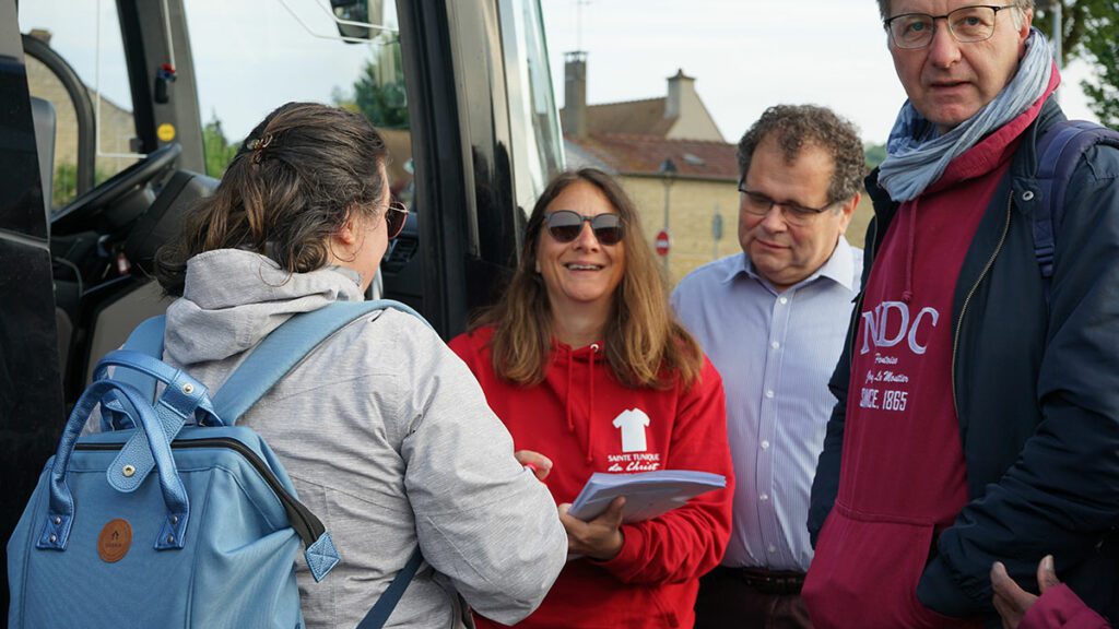À leur arrivée, le groupe a été chaleureusement accueilli par les volontaires de l’événement, qui leur ont remis deux livrets : un guide de l’Ostension et un livret pédagogique adapté aux enfants, édité par la Facel Val-d’Oise. En petits groupes composés d’un adulte et de deux ou trois enfants, ils ont pu se recueillir devant la Sainte Tunique du Christ, moment fort de la journée.