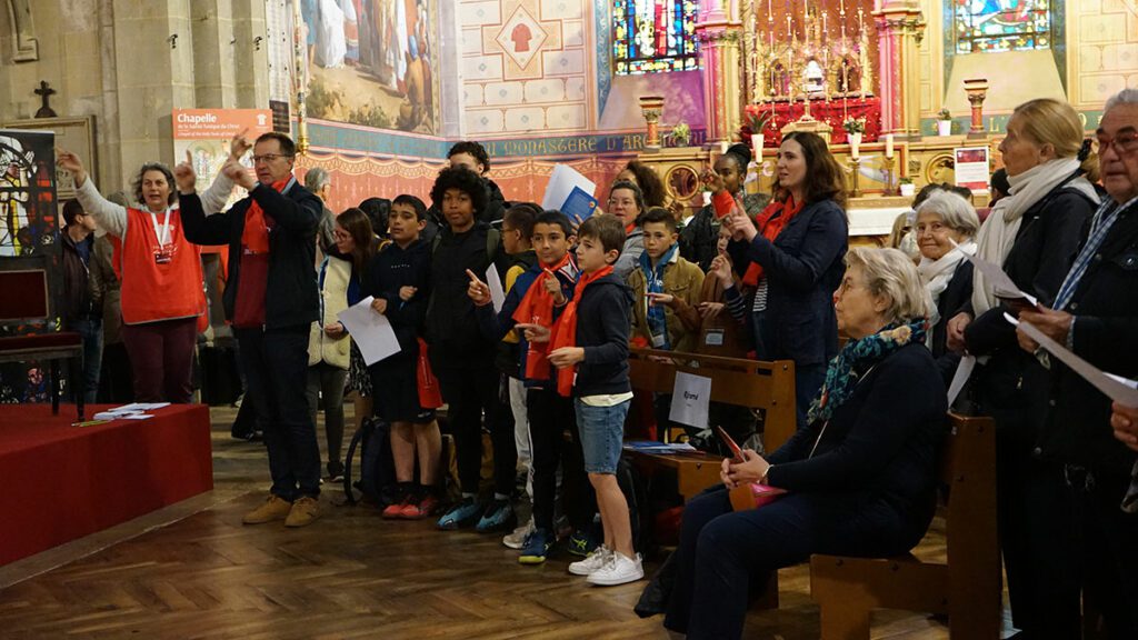 Une animation spirituelle dans la nef de la basilique leur a ensuite permis de prier, chanter, confier leurs intentions et, pour ceux qui le désiraient, recevoir le sacrement de réconciliation. Grâce aux livrets ludiques de la Facel, les enfants ont découvert l’histoire de la Sainte Tunique ainsi que les trésors architecturaux de la basilique.