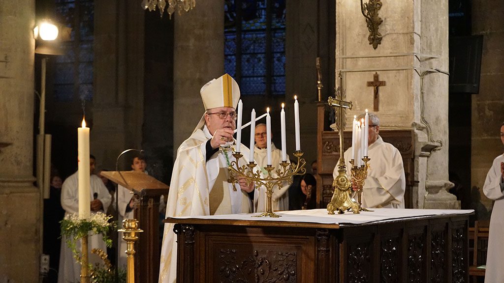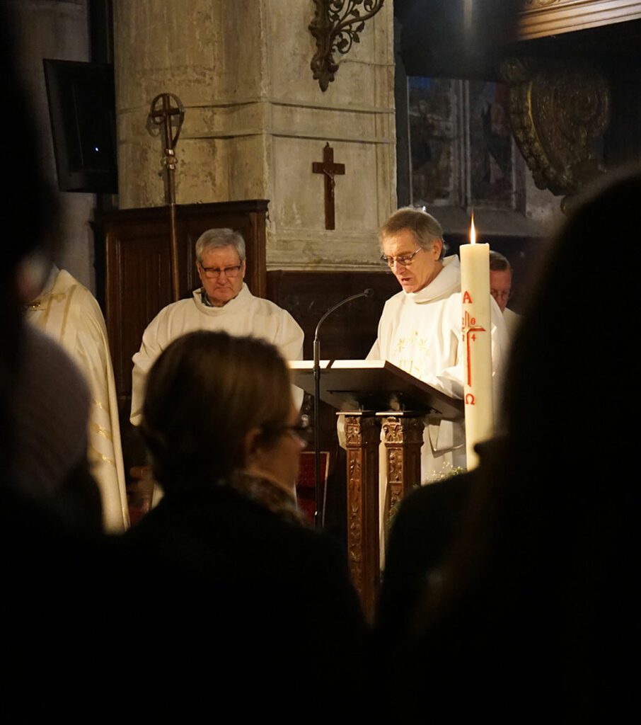Dans son homélie, Mgr Benoît Bertrand a rappelé le livre du prophète Jérémie (Jr 29, 11) : « Je sais bien quels projets je forme pour vous ; et je vous l’affirme : ce ne sont pas des projets de malheur mais des projets de bonheur. Je veux, dit le Seigneur, vous donner un avenir à espérer ». « Notre raison d’espérer, c’est Dieu lui-même », a insisté l’évêque. « A Noël, Dieu nous donne Jésus, son Fils, pour nous aimer et nous sauver. Cette espérance, elle est pour tous. Elle est à accueillir, elle est à célébrer, elle est à vivre, elle est à partager. C’est une espérance de bonheur. (…) Sommes-nous disposés à laisser l’Espérance devenir notre raison de vivre ? » Jeunes, familles, adultes, acteurs de la vie diocésaine… nous sommes porteurs d’espérance, nous tous appelés à incarner cette espérance vivante. « Nous vivons, en dépit des apparences, un temps favorable pour l’annonce de l’espérance chrétienne. »