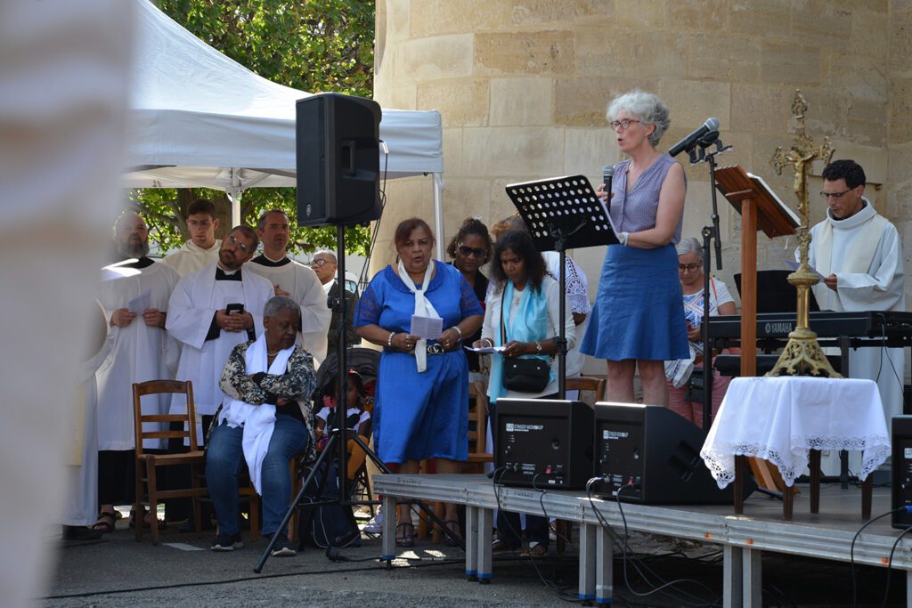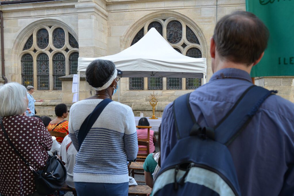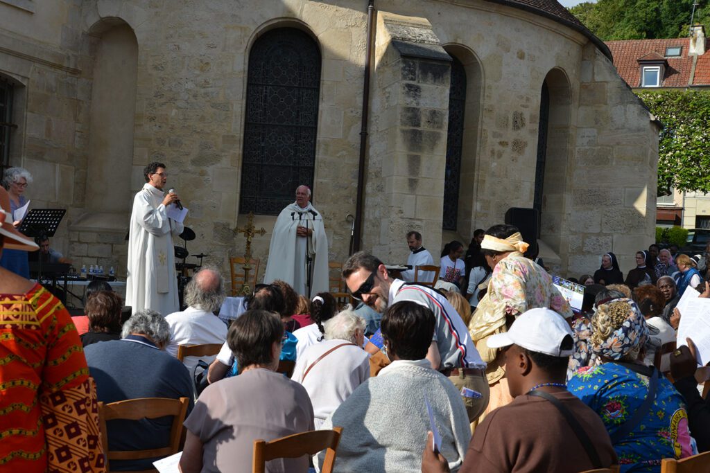A 17h, les vêpres présidées par Mgr Stanislas Lalanne étaient célébrées sur le parvis, au chevet de l’église. « Durant cette année pastorale j’ai le profond désir que dans nos paroisses se créent et se développent, de manière vraiment significative et visible, des petites fraternités missionnaires dans le dynamisme de la démarche synodale » exprimait notre évêque lors de son exhortation. A la manière de la visitation, « l’Eglise est appelée à visiter fraternellement le monde pour lui apporter, dans la douceur de sa charité, la joie de la délivrance : la paix, le bonheur, le salut. L’Eglise est appelée à être signe, parmi les hommes, dans notre société du Val-d’Oise, de la visite de Dieu. » (lire l’homélie de Mgr Lalanne).