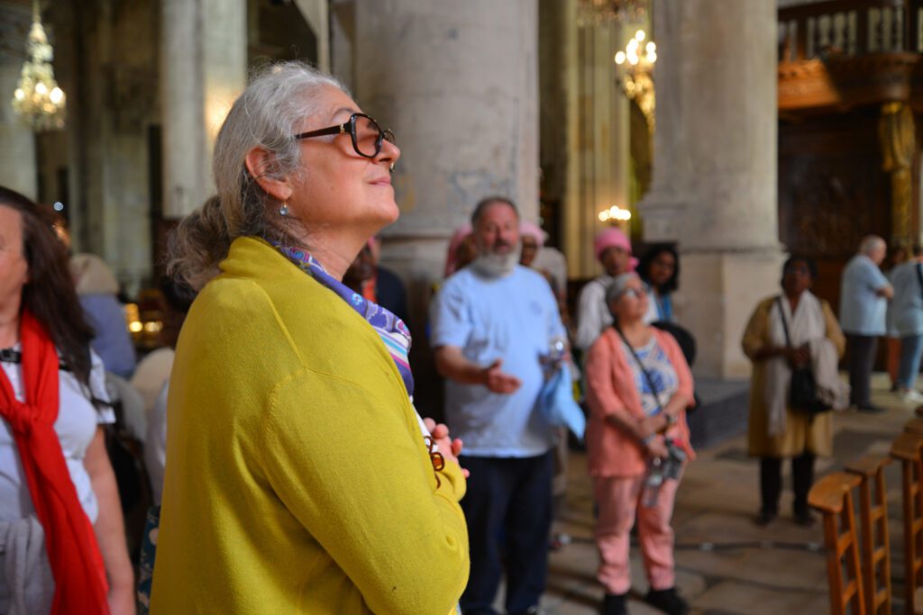 En chemin, il était possible d’admirer deux arcades de l’église de l’ancien Couvent des Cordeliers (place de l’Hôtel de ville) et de s’arrêter au Carmel de Pontoise, un des plus ancien de France, pour un temps spirituel avec la prière de Mme Acarie, principale réformatrice du Carmel en France. Entre chaque étape, les chants à la Vierge résonnaient avec ferveur dans les rues.