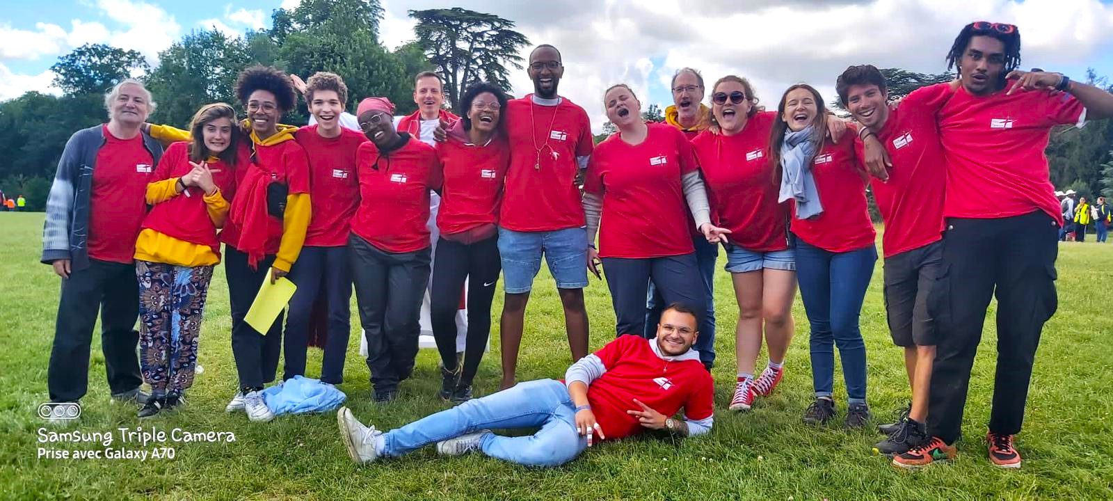 L’équipe de la mairie de « Pontoiseville », animée par le diocèse de Pontoise, était composée de Marie, Nicolas, Audrey, Habiba, Benji, Ted, Jeanne et moi. Une équipe de huit jeunes de 23 à 28 ans qui a, durant plusieurs mois préparé, imaginé et organisé tous les temps en village, découpé le village en hameaux, inventé une chorégraphie, été en lien avec l’équipe diocésaine etc. Pour renforcer, compléter faire prier et danser notre équipe de mairie, nous étions accompagnés du père Bruno Guespereau de la paroisse de Cergy ainsi que de 6 musiciens : Christophe, JP, Lucas, Côme, Suzie et Jade.