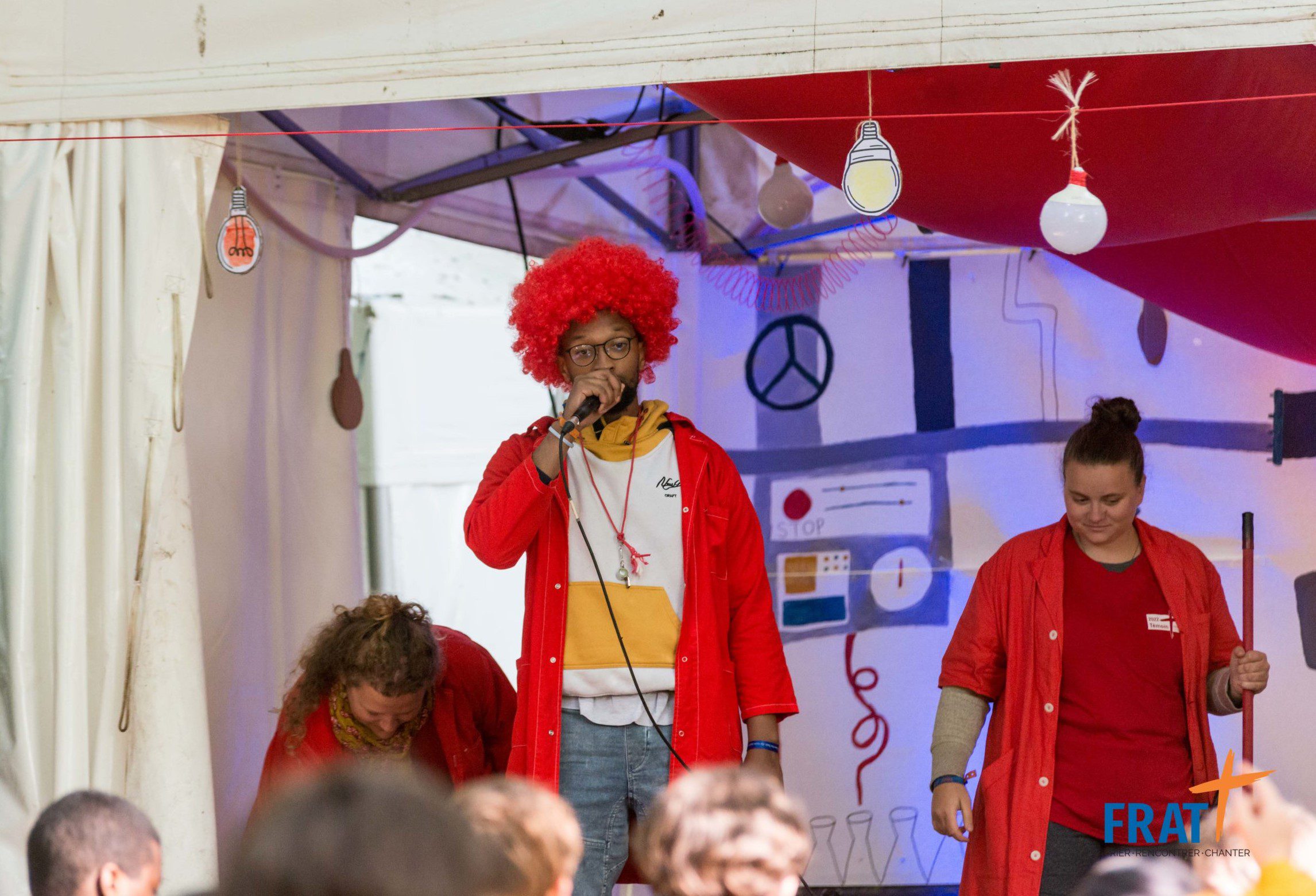 Du côté du laboratoire, après de nombreuses péripéties, la disparition de nos ingrédients, la panique au sein du laboratoire, les jeunes nous ont aidés à comprendre qu’ils étaient LA solution. Plus besoin de fabriquer artificiellement l’amour, ils en sont les détenteurs. Les scientifiques les ont observés pendant 4 jours jouer, danser, prier, rire et chanter et ont vu dans leur yeux tout le bien qu’ils peuvent faire autour d’eux. Les jeunes ont été envoyés pour faire fleurir les grâces reçues au FRAT et faire fructifier cet amour autour d’eux.