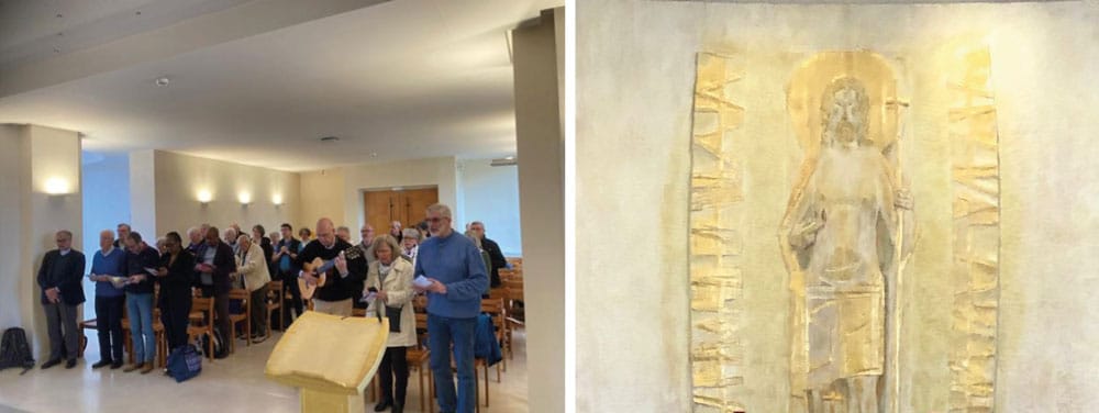 Nous nous sommes ensuite regroupés pour vivre les dernières Laudes dans la belle Chapelle du domaine St Joseph. Face à nous, un Christ lumineux nous invite à poursuive le pèlerinage et à rayonner de toutes les grâces reçues pendant ces 5 jours.